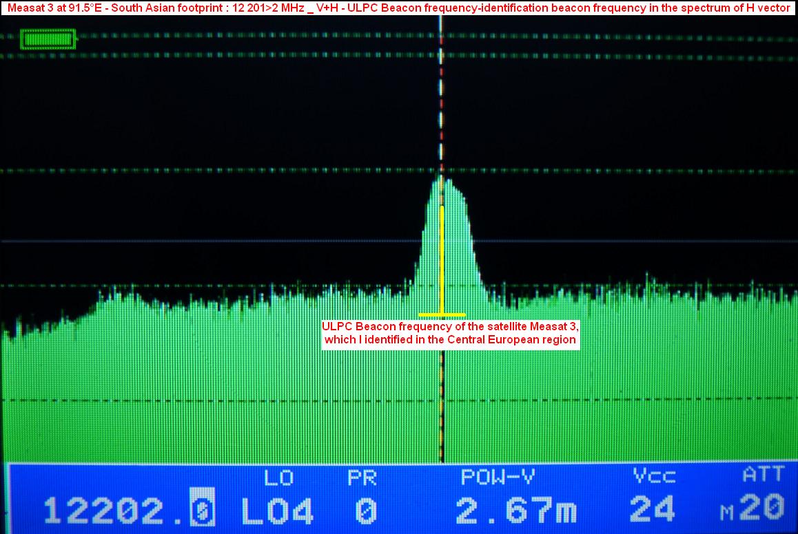 Measat /ULPC Beacon signal in KU band : precise identification of the satellites in orbit at the research point