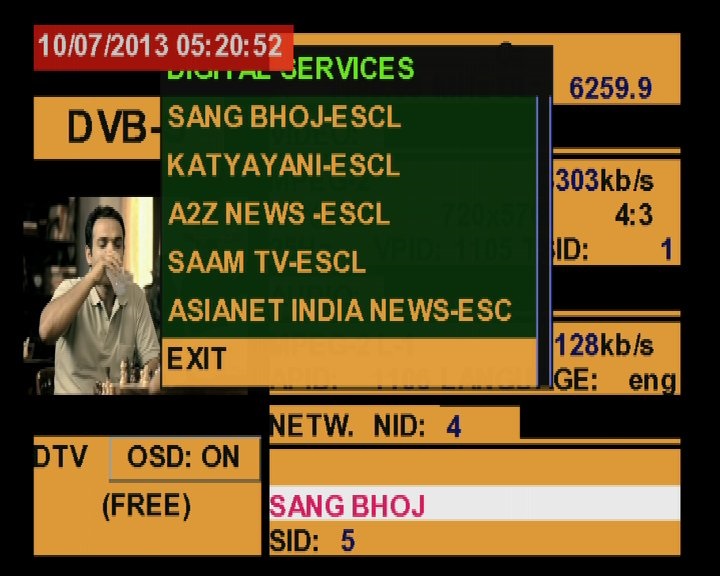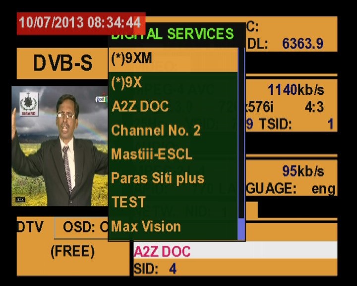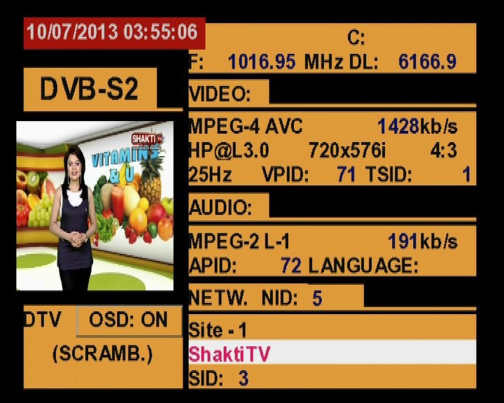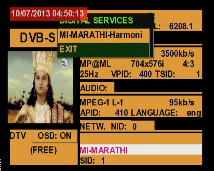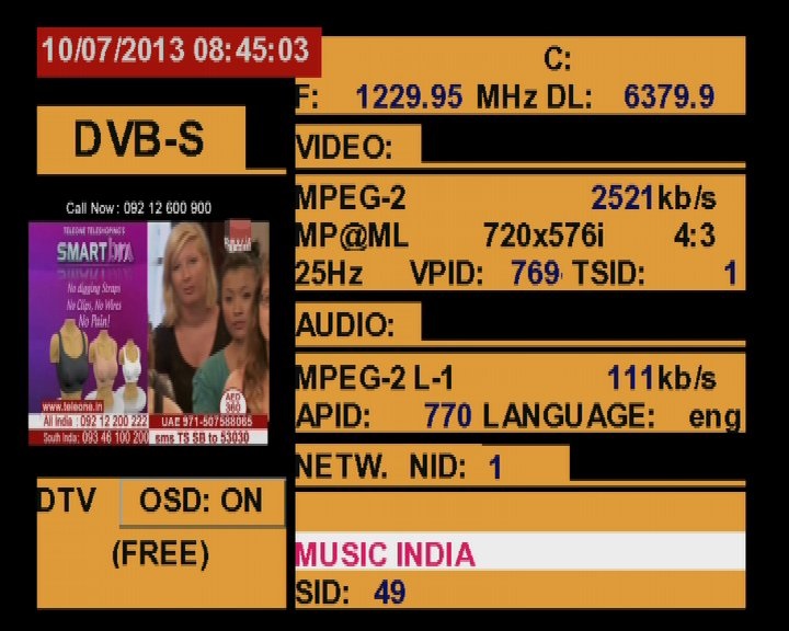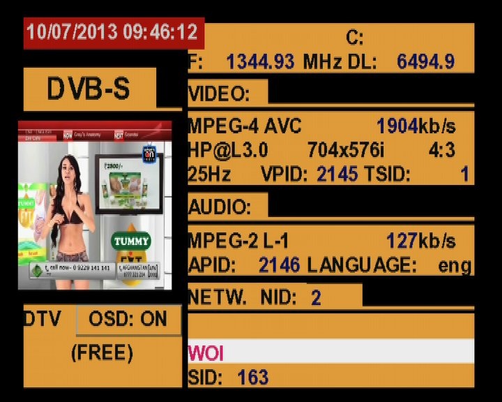 4 087 H @ 1 062.70 MHz @ SPAN 50 MHz : 83°E Live India![]()