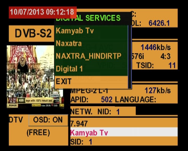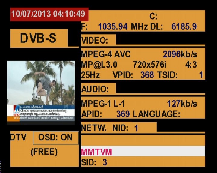 4 115 H @ 1 035.94 MHz @ SPAN 50 MHz : 83°E Manorama news![]()