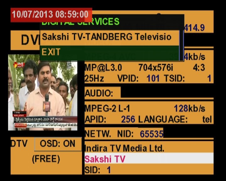 3 885 H @ 1 264.93 MHz @ SPAN 50 MHz : 83°E Sakshi TV![]()