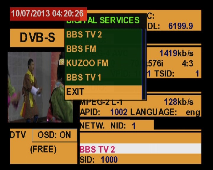 4 180 H @ 969.20 MHz @ SPAN 50 MHz : 83°E Kolkata TV![]()