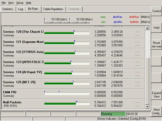 ABS 1 at 75.0°E-southern beam : 12 579 H ABS network / transport stream table / bit rate