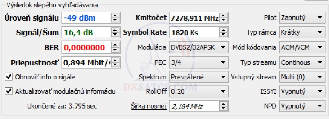 elm. vlnení vo frekvenčnom spektre od 7250 do 7 750 MHz a publikovaniu modulačných parametrov niektorých dátových paketov,