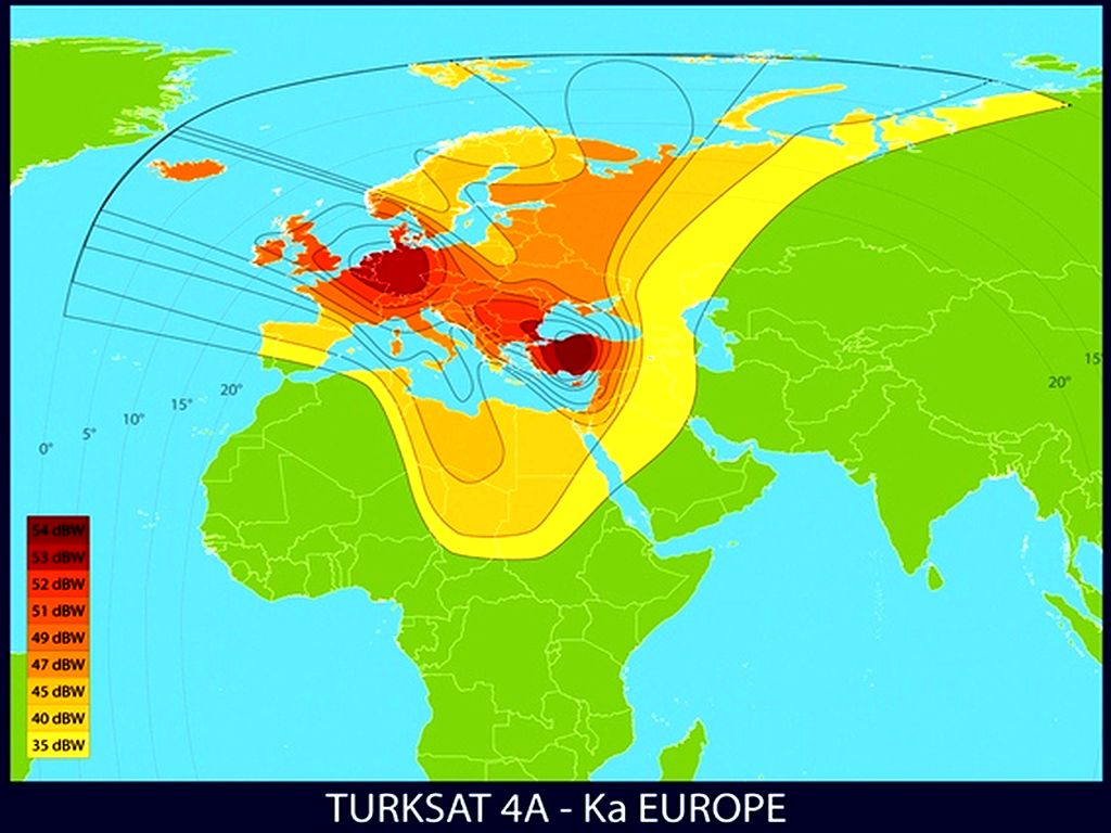 ►T4A-Turksat-4A-42°e-footprint : KA Europe,Middle East and Africa footprint-coverage-beam,geographical location of the measurement