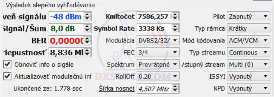 3 338 | --- | ? | ? | DVB-S2/32APSK/ACM/VCM |