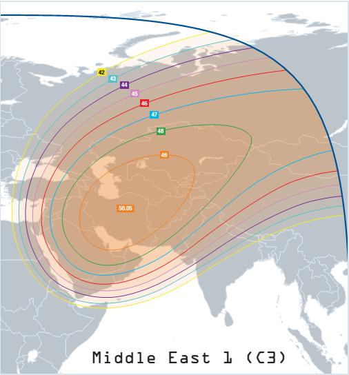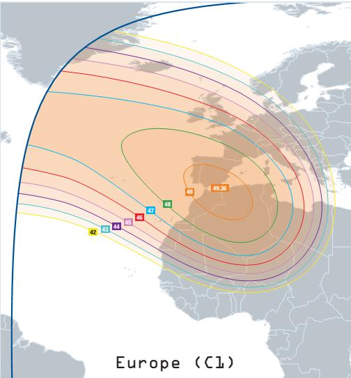 X-band coverage from Eastern Brazil and the Atlantic Ocean,across Europe,Africa and the Middle East as far east as Singapore